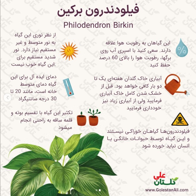 فیلودندرون برکین گیاه بسیار زیبا با نگهداری آسان و در حد متوسط در گلستان علی اردبیل آماده تقدیم است. هم سایز نشاء کوچک و هم سایزی که در تصویر مشاهده میفرمایید. موجود هستند. راهنمای نگهداری در تصویر دوم مشاهده فرمایید.